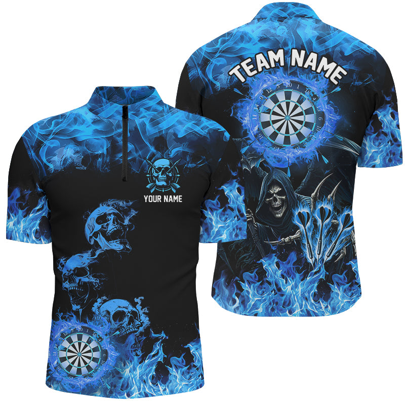 Fire Flame Darts Board Custom Skull Dart Shirts For Men, Death Skeleton Scary Dart Jerseys | Blue TDM2903