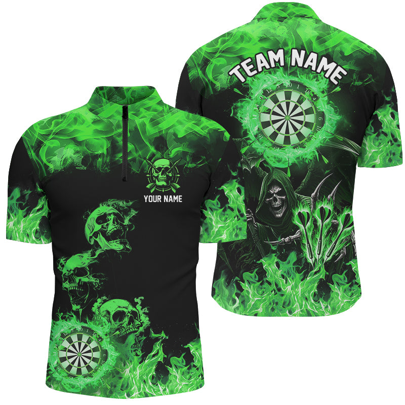 Fire Flame Darts Board Custom Skull Dart Shirts For Men, Death Skeleton Scary Dart Jerseys | Green TDM2904