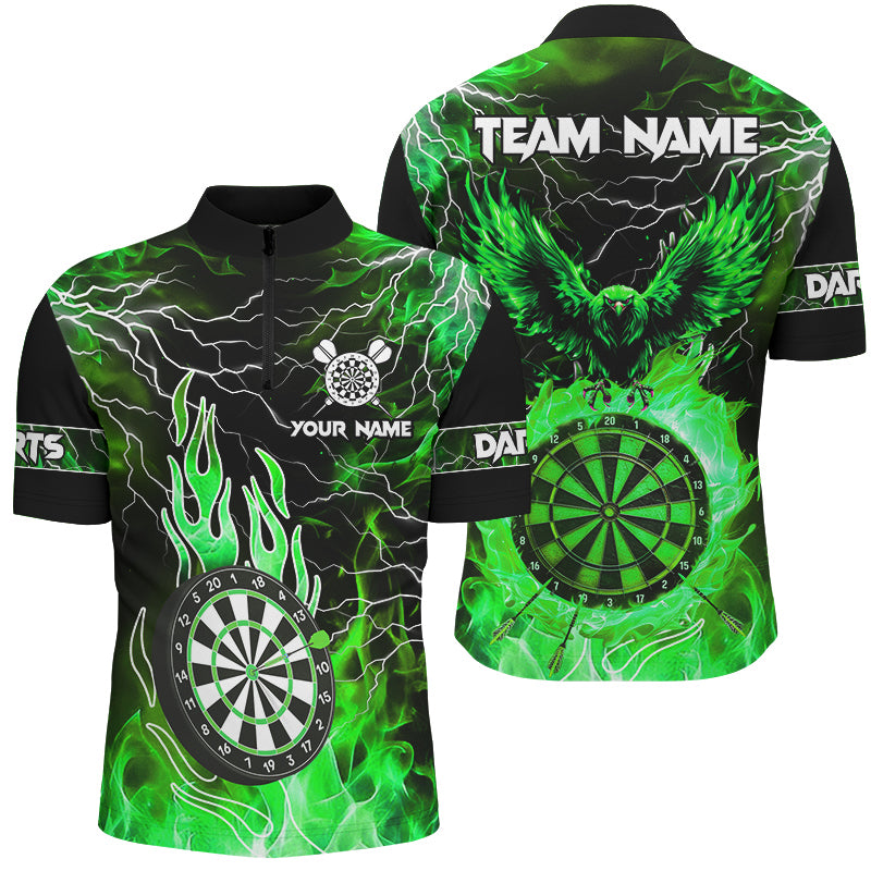 Green Dart Board Fire Flame Custom Eagle Dart Shirts For Men, Thunder Lightning Dart Team Jerseys TDM2927