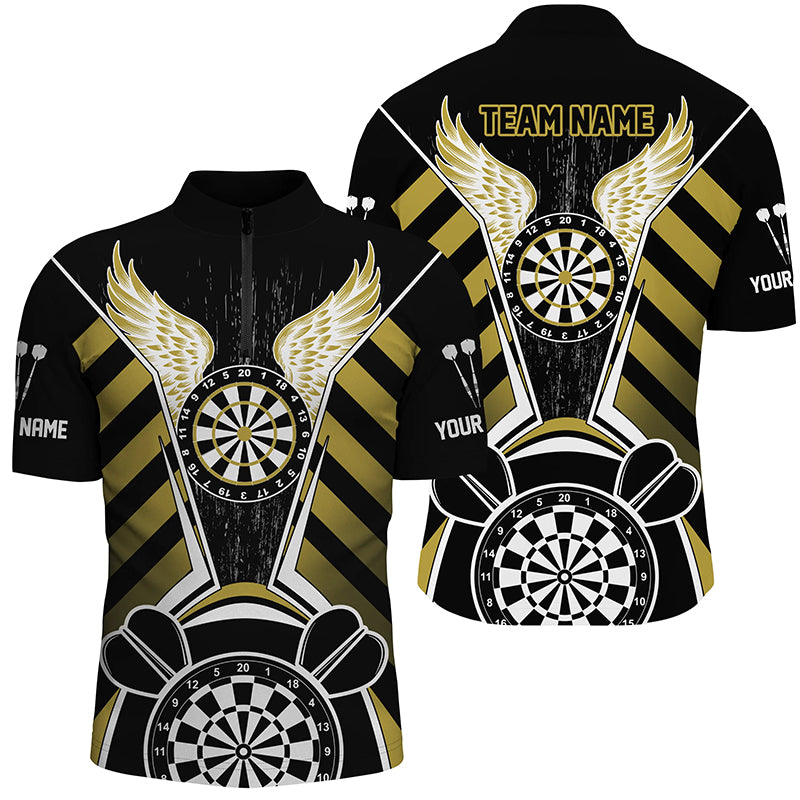Personalized Black Yellow Darts Board Wings Jerseys Custom Dart Shirts For Men Funny Darts Outfit TDM2931
