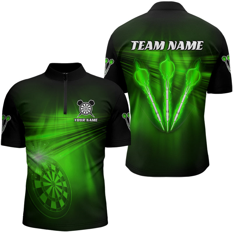 Personalized Green Darts Flash Light Men Dart Polo & Quarter Zip Shirt, Dart Team Shirt Dart Jersey TDM3112