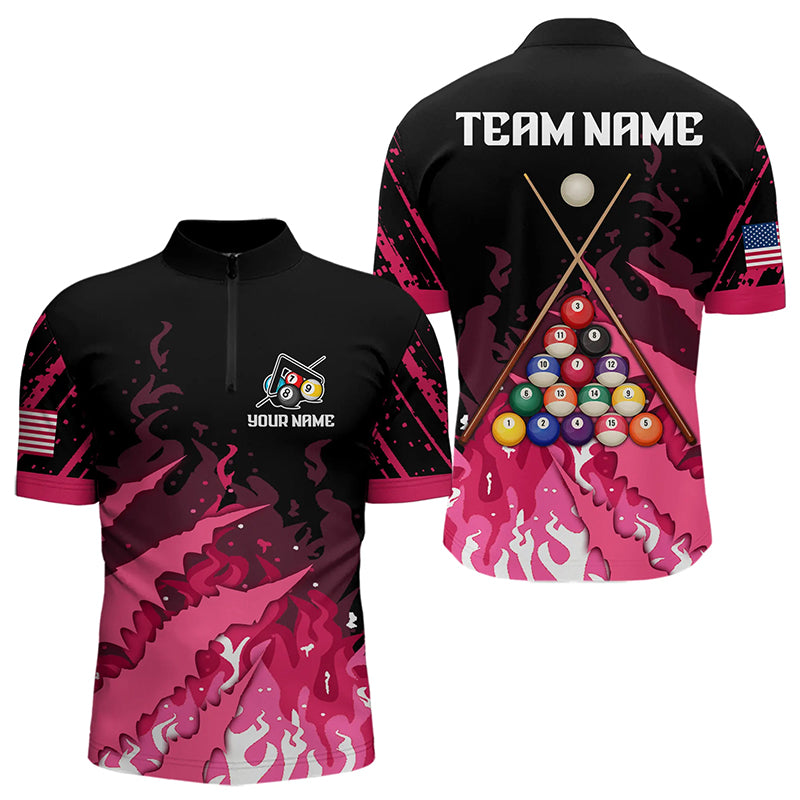 Custom Pink And Black Billiard Polo & Quarter Zip For Men, 3D Billiard Team Shirts Pool Jerseys TDM3225