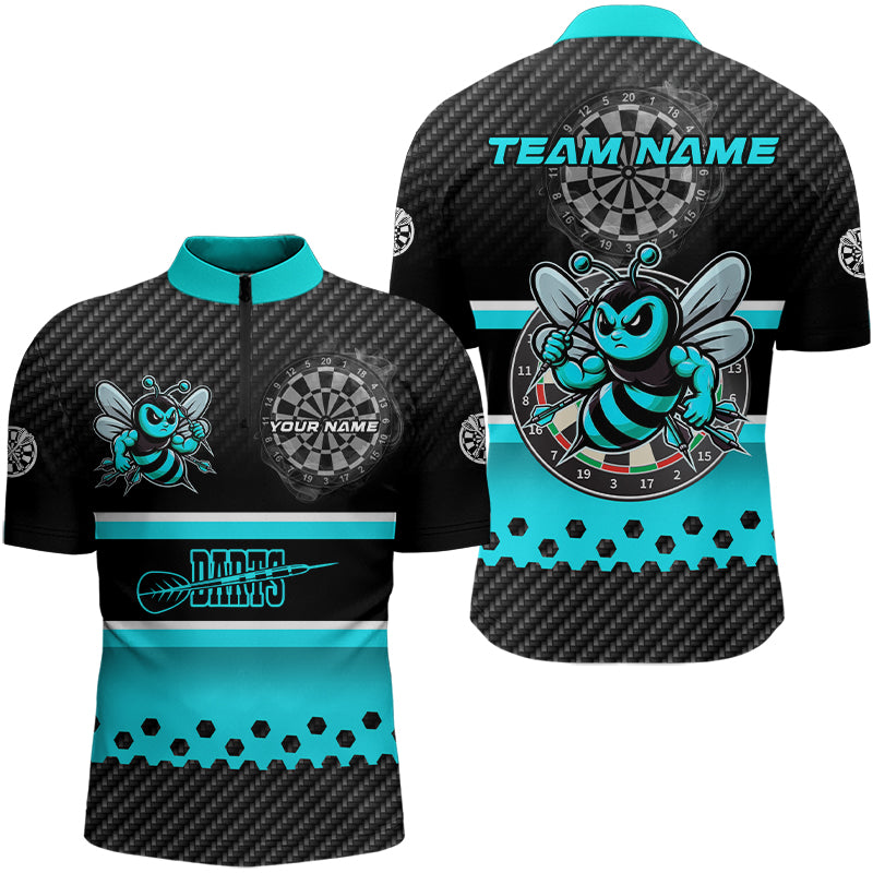 Black And Cyan Darts Bee Custom Name Darts Shirts For Men, Funny Darts Apparel, Best Darts Gifts TDM3264
