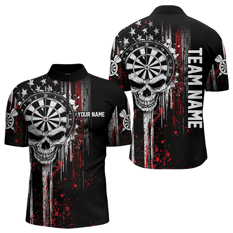 Retro American Flag Grunge Skull Darts Polo & Quarter Zip Custom Dart Shirts For Men Darts Jerseys TDM3383