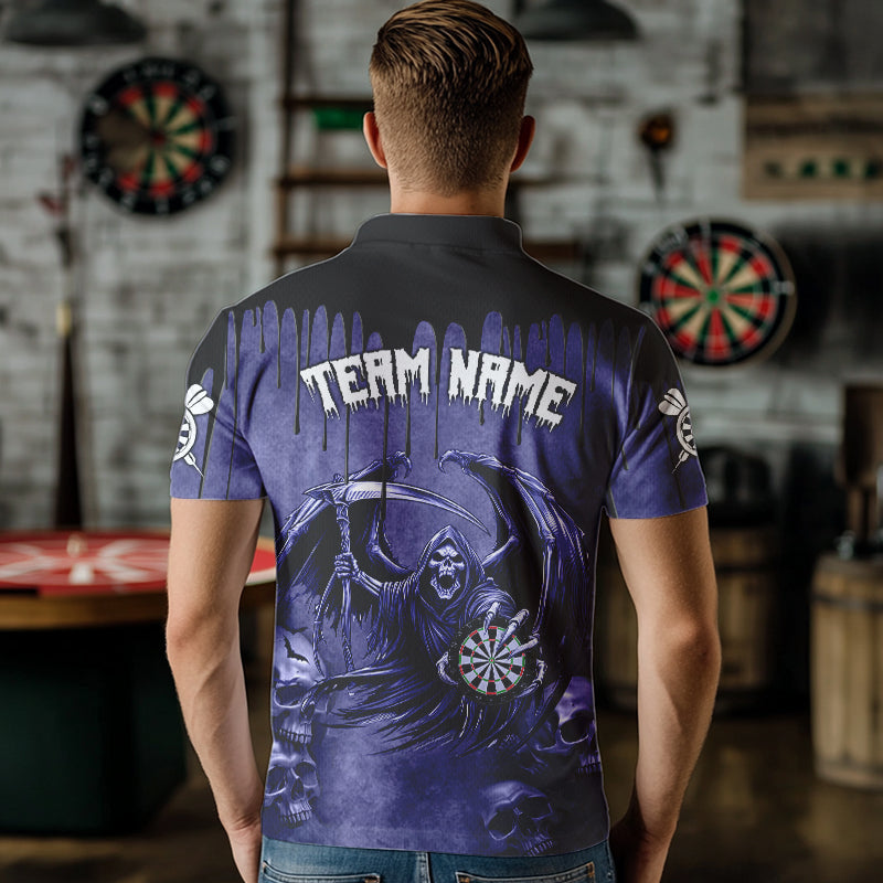 Custom Purple Gothic Skull Darts Shirts For Men, Personalized Cool Darts Team Jerseys Outfit TDM3463