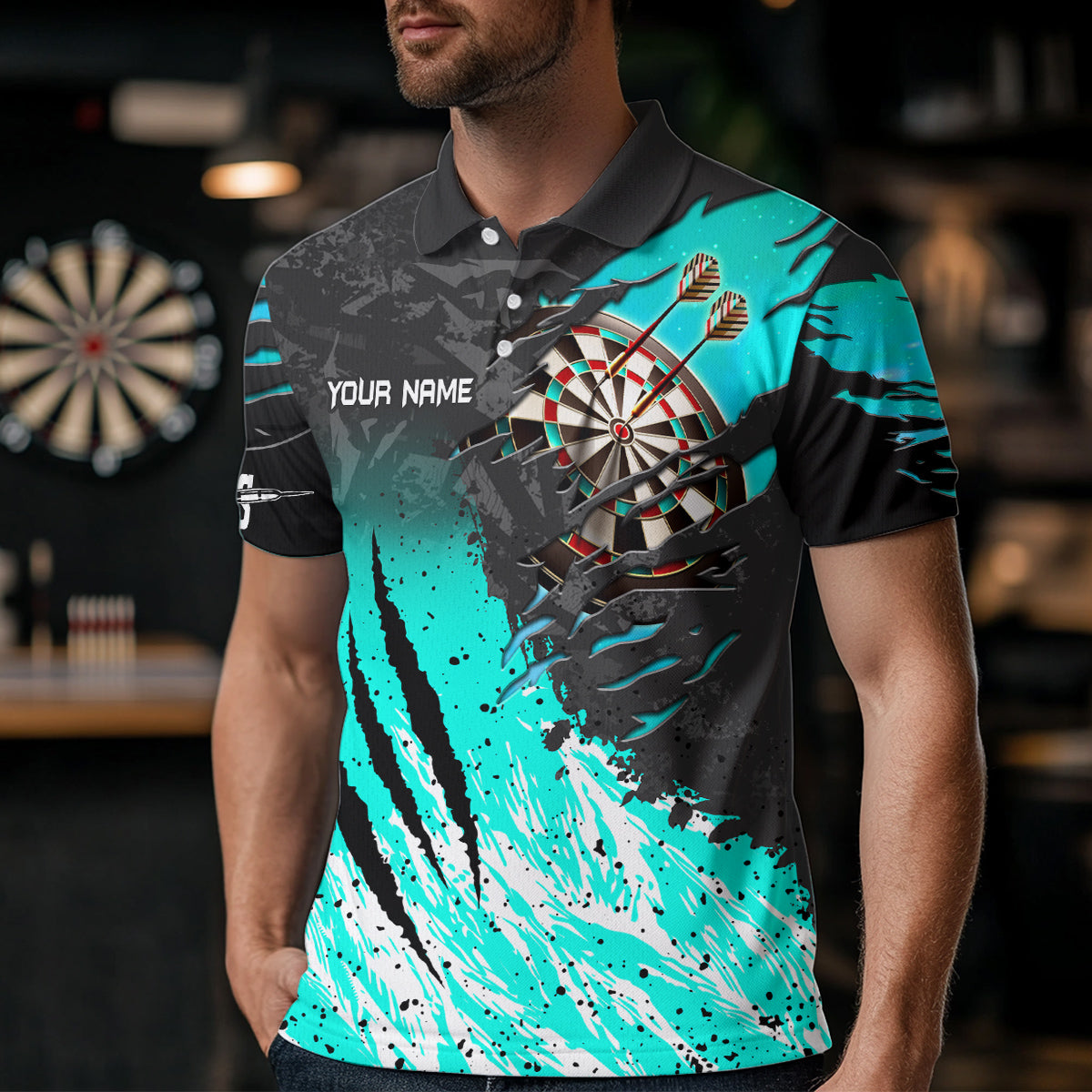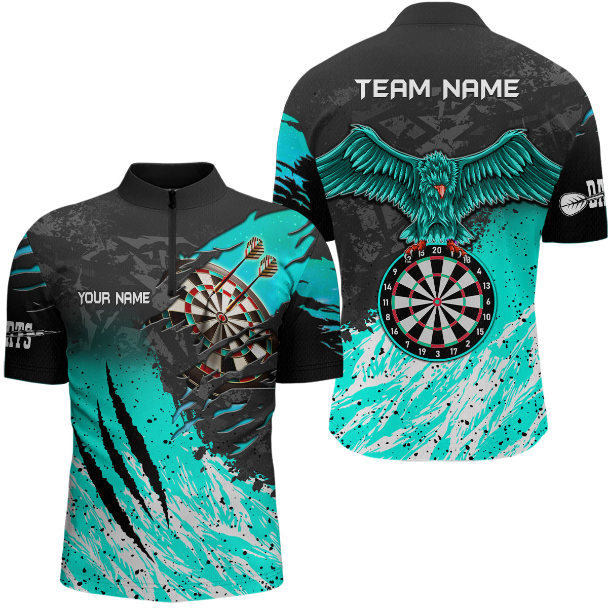 Personalized Turquoise Black Eagle Dartboard Dart Polo & 1/4 Zip For Men Custom Team Dart Jerseys TDM3522