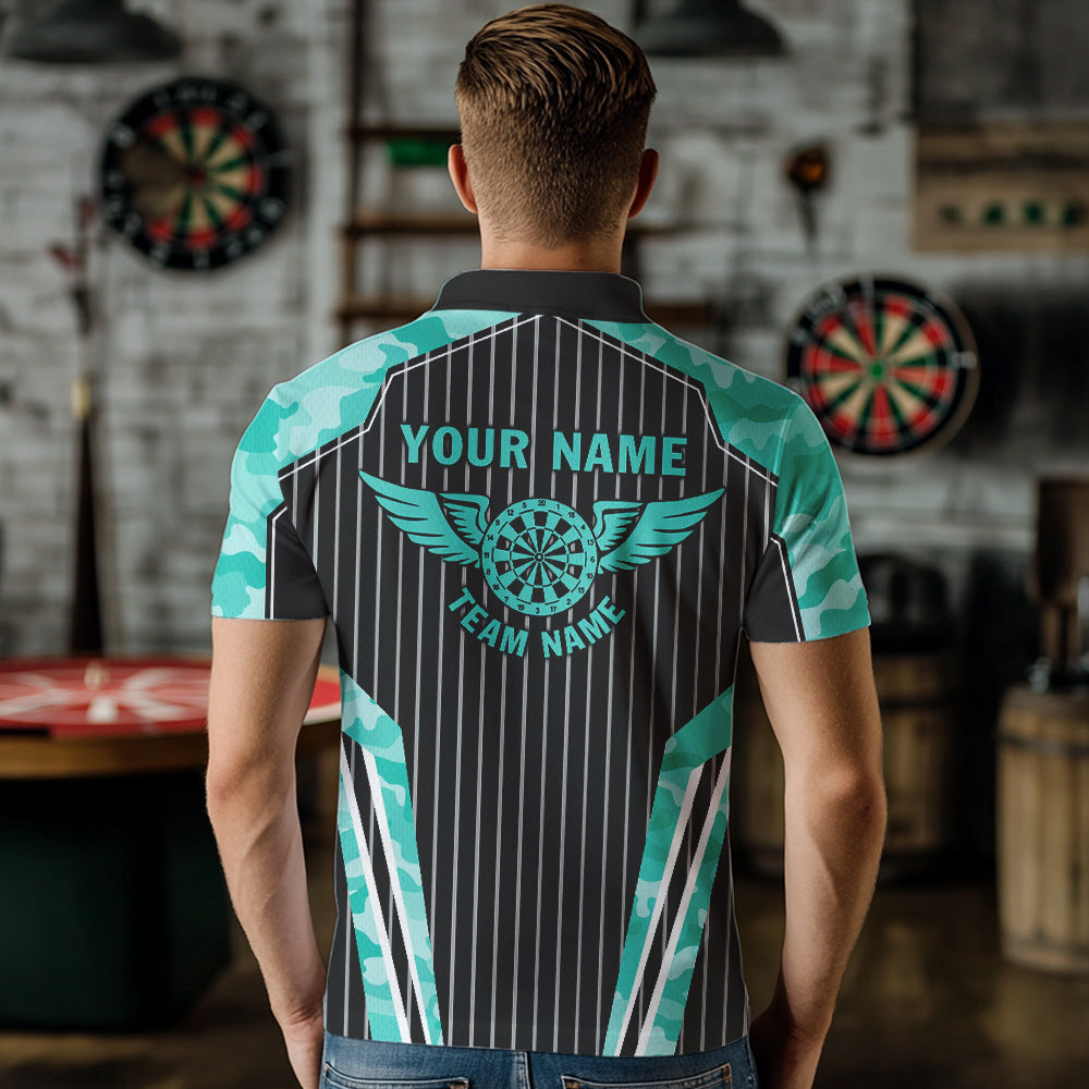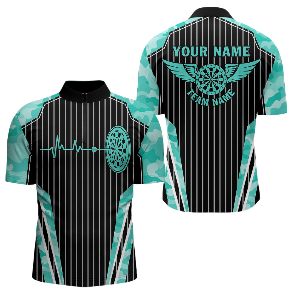 Turquoise Camo Dartboard Pulse Heartbeat Custom Men Dart Shirts, Funny Wings Cool Dart Team Jerseys TDM3618