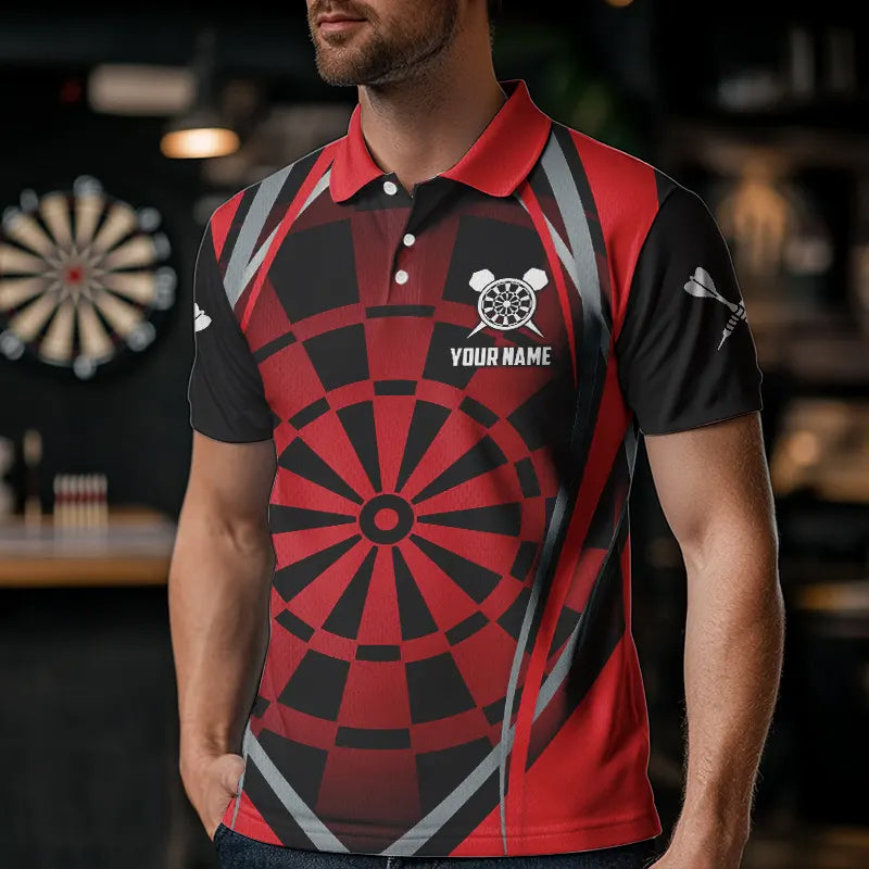 Personalized Black And Red Dartboard Pattern Dart Shirts For Men Custom Dart Jerseys Team Uniform TDM3651
