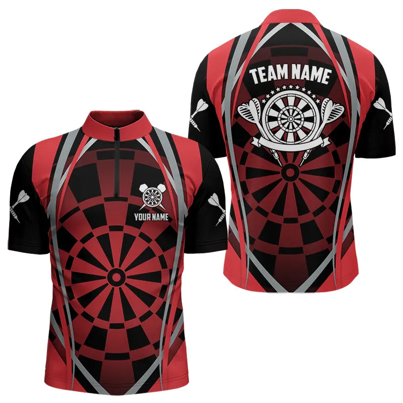 ✔️ Custom Unisex Dart Shirts Our uniquely designed dart polo and quarter-zip shirts are ideal for avid dart players who want to make a bold statement. With a stylish form and distinctive design, these shirts set you apart, highlighting your passion and confidence in darts. Whether you are a professional player or play darts for fun, we are ready to create great shirts for you and your team. Add your personal touch to create a one-of-a-kind shirt that carries your unique imprint.