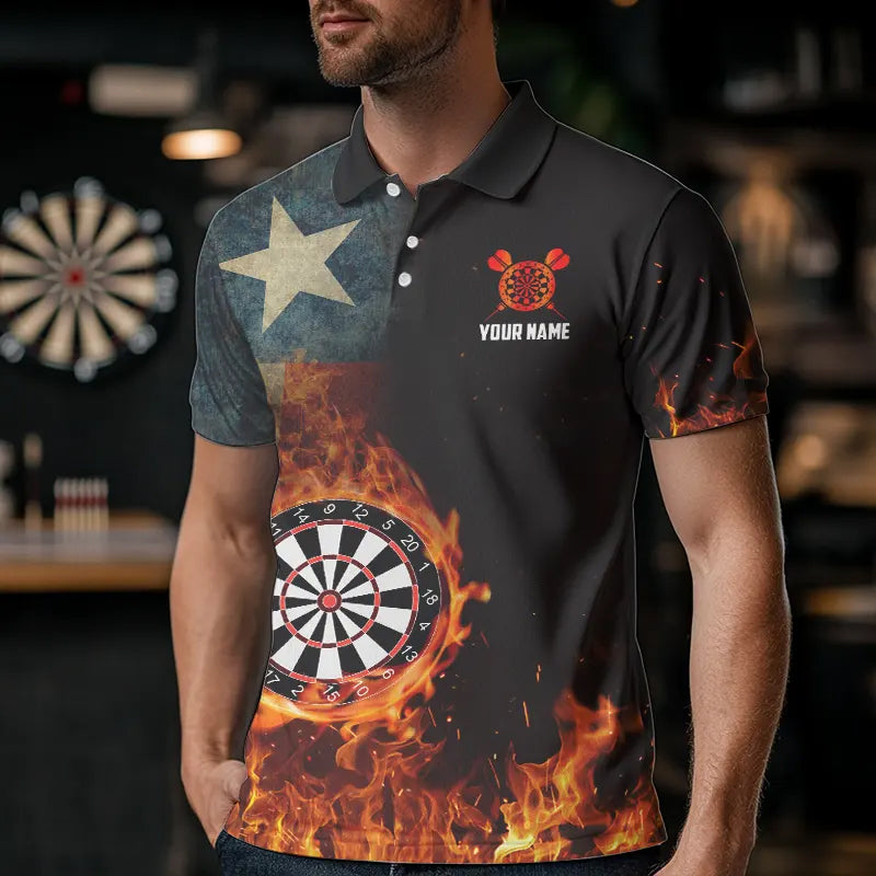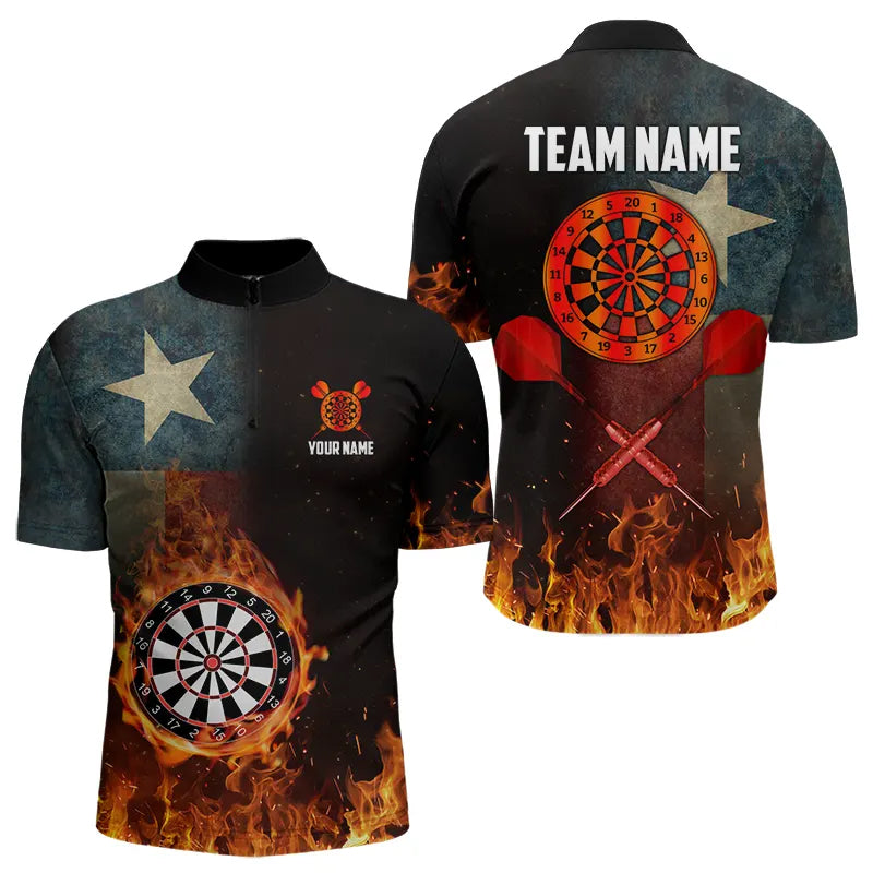 Personalized Retro Texas Flag Flame Dartboard Darts Shirts For Men, Patriotic Texas Dart Jerseys TDM3677