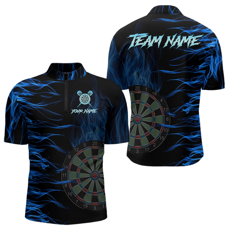 Personalized Blue Flaming 3D Fire Dart Shirts For Men Custom Team Dart Jerseys Polo & Quarter Zip TDM3685