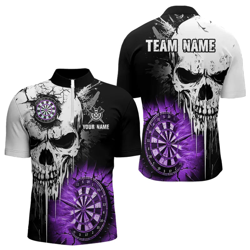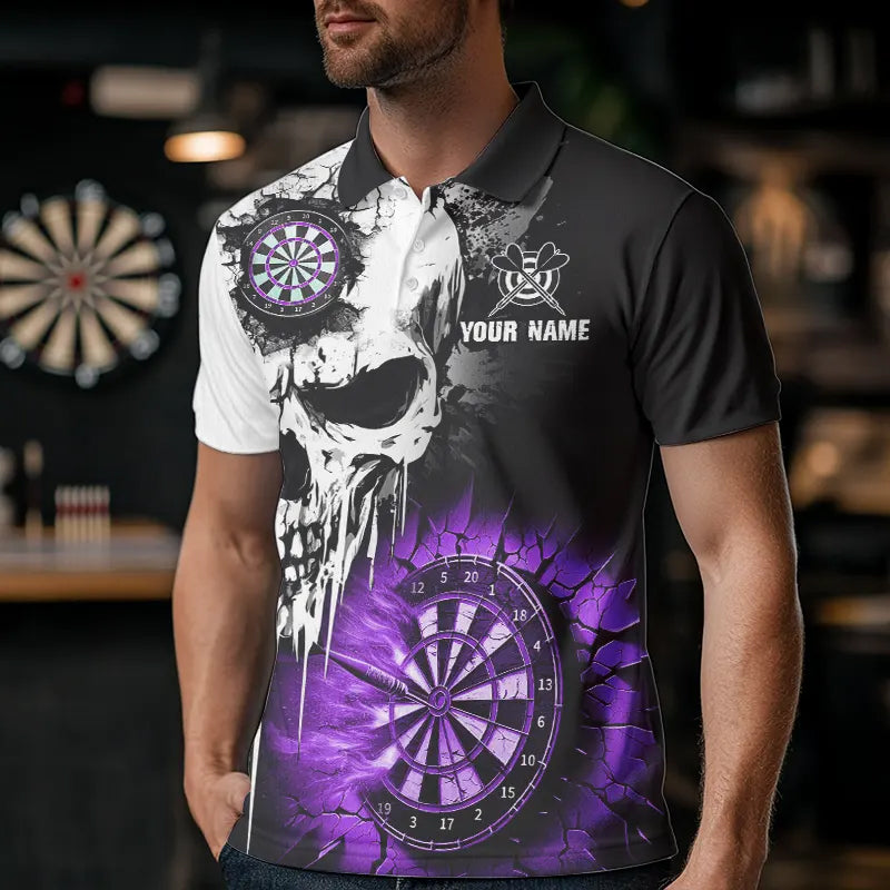 Personalized Grunge Skull Crack Wall Men Dart Shirts Custom Darts League Team Jerseys |Purple TDM3698
