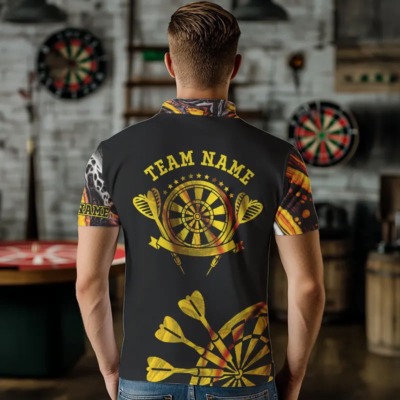 Yellow Golden Darts Tie Dye Polo & Quarter Zip Custom Dart Shirts For Men Glowing Dart Jerseys TDM3709