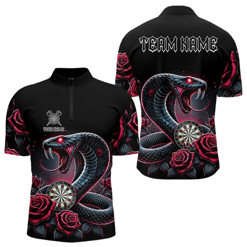 Personalized Rose And Dartboard Custom Cobra Snake Dart Shirt For Men, Dart Jerseys Polo & 1/4 Zip TDM3749