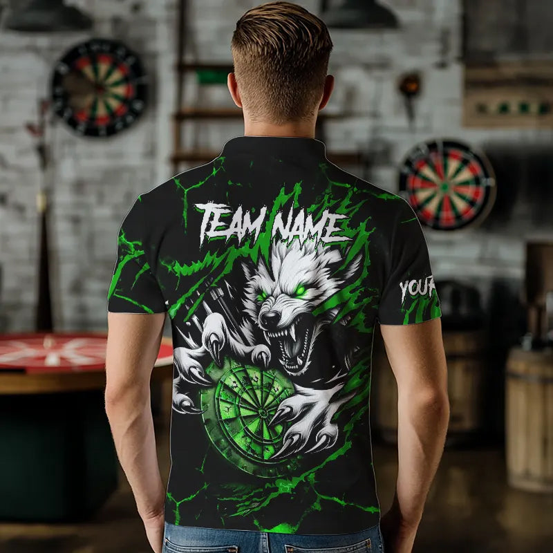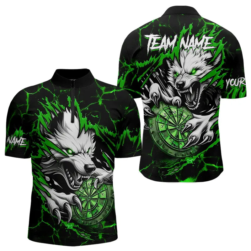 Personalized Wolf Lightning Darts Polo & Quarter Zip Custom Dart Shirts For Men Darts Jersey |Green TDM3773