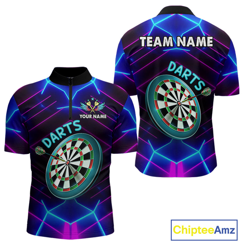 Neon Purple Blue Dart Shirts For Men Custom Glowing Dart Jersey Team Outfit Polo & Quarter Zip TDM3846