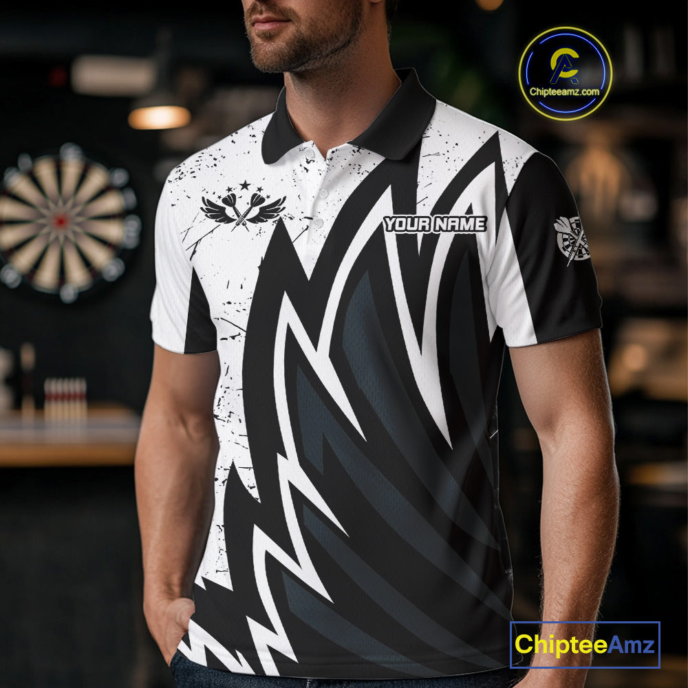 Personalized Black White Break Glass Dart Shirts For Men Custom Wings Dart Jersey Polo & 1/4 Zip TDM3881