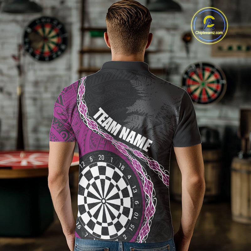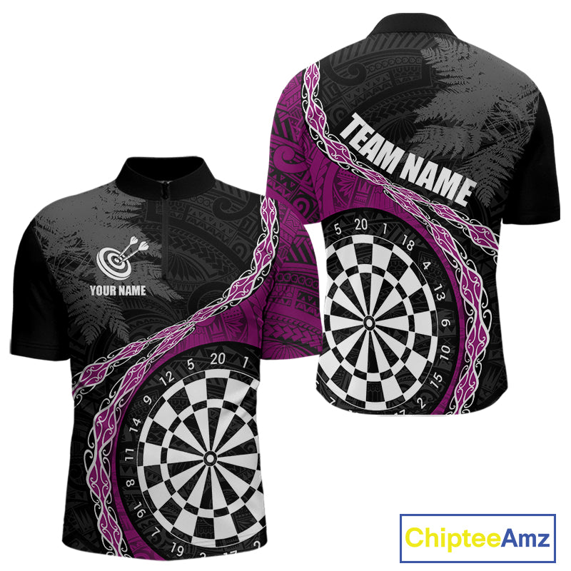 Custom Black And Purple Tribal Darts Shirts For Men | Team Polo & Quarter Zip Darts Jerseys TDM3991