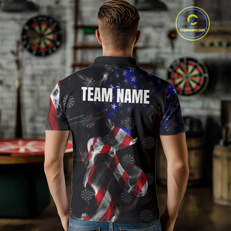 Custom Men's Dart Shirt With Pocket Option, US Flag Smoke Darts Team Jersey TDM4029