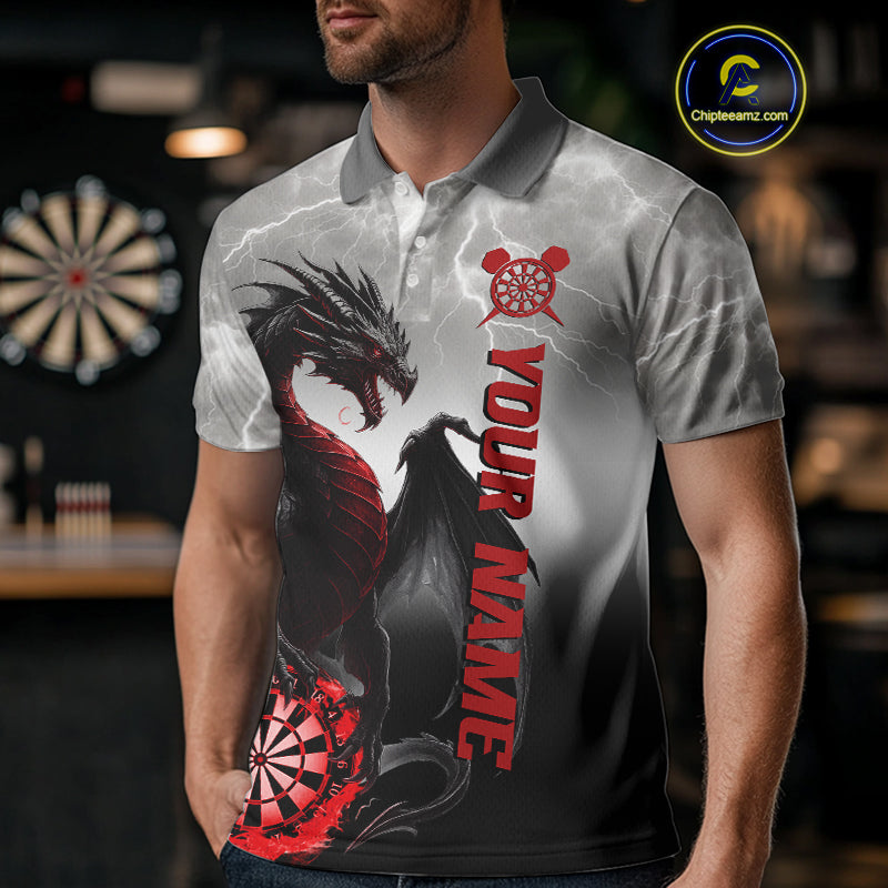 Red Custom Lightning Dragon Dart Shirts For Men – Strike Darts Team Jerseys Polo & Quarter Zip TDM4059