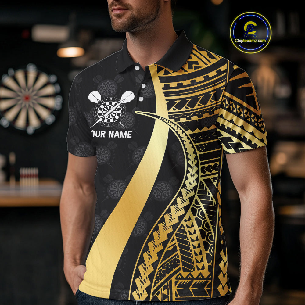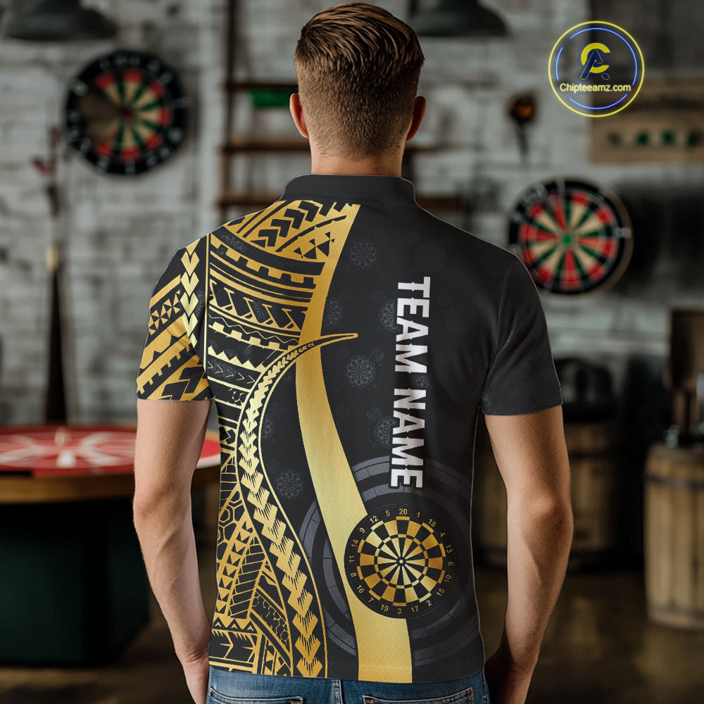 Personalized Black And Golden Tribal Dart Shirts For Men Custom Dart Jersey Team Polo & 1/4 Zip TDM4105