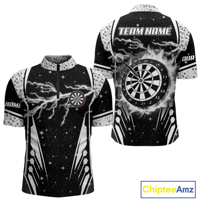 Personalized Thunder Lightning Dart Jersey For Men, Black White Darts Team Shirt Polo & 1/4 Zip TDM4123