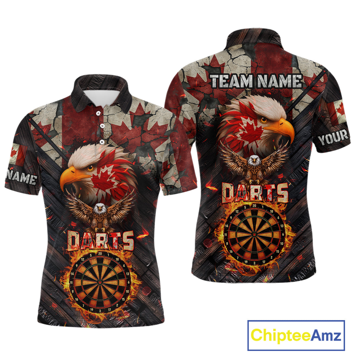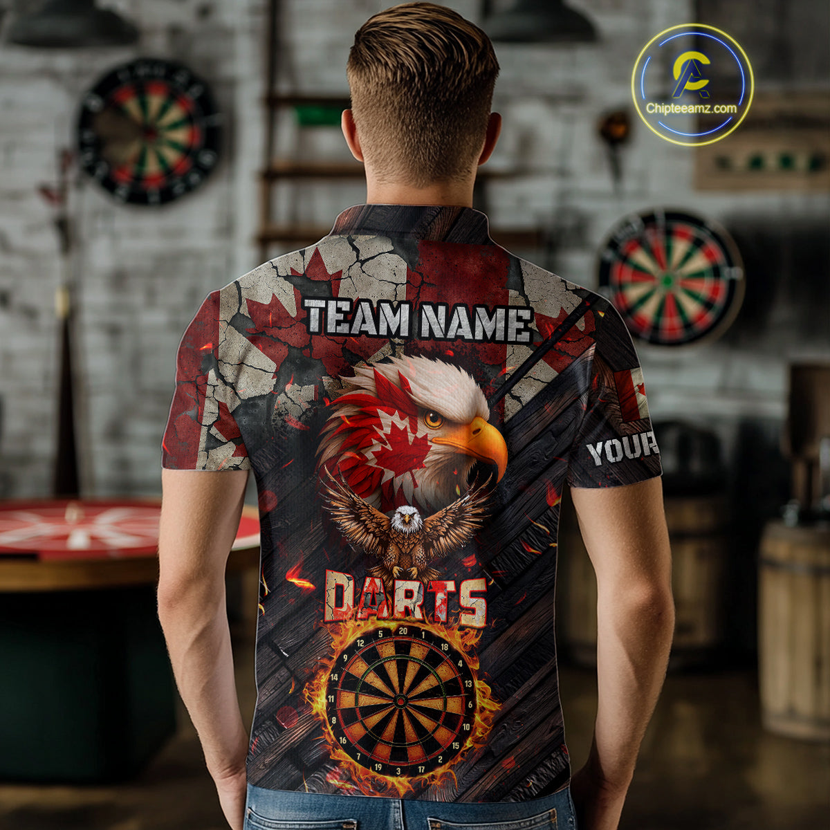 Canada Flag 3D Dartboard Fire Flame Custom Eagle Darts Shirt For Men, Patriotic Darts Team Jersey TDM4148