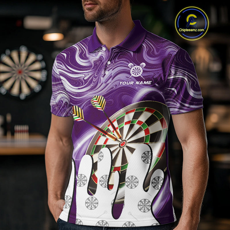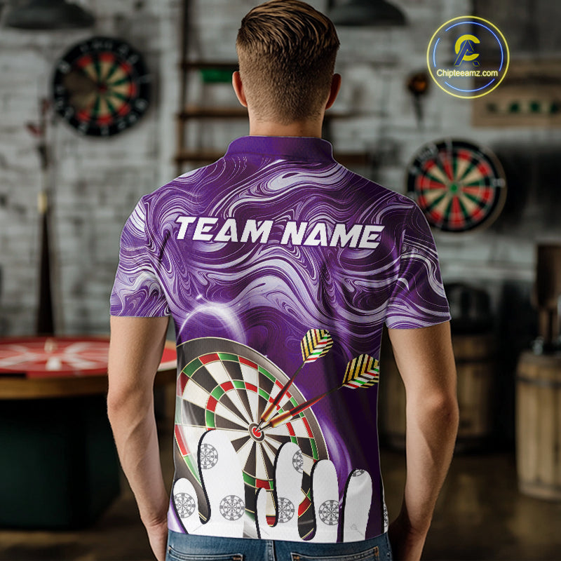 Personalized Marble Swirl Dart Shirt For Men Custom Funny Darts Jersey Team Polo & 1/4 Zip|Purple TDM4162