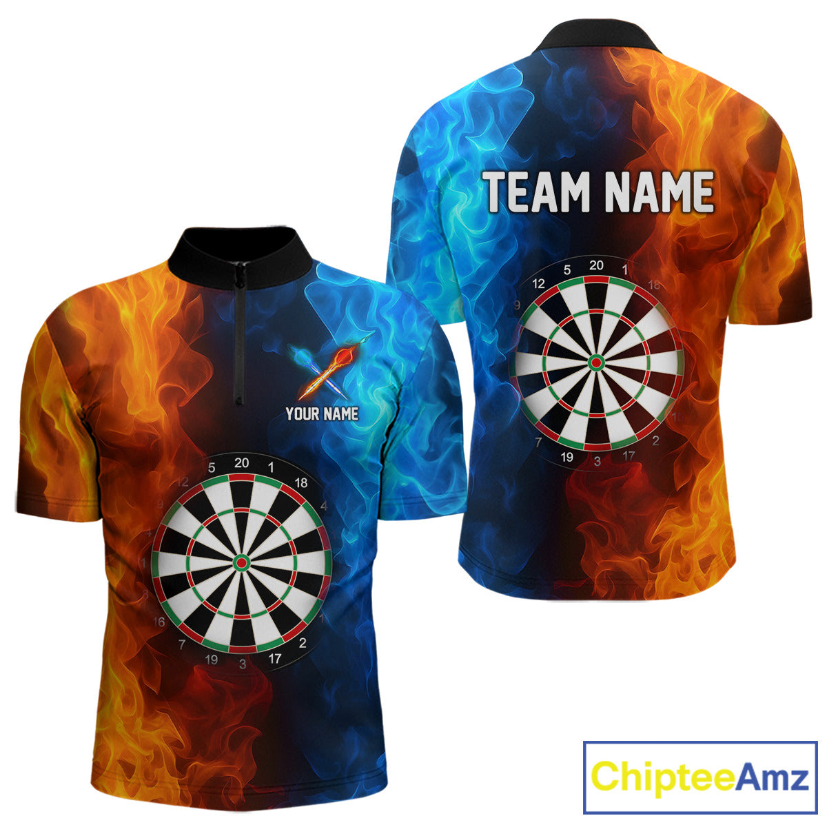Blue And Orange Custom Fire Darts Shirt For Men, Personalized Darts Team Jersey Polo & 1/4 Zip TDM4206