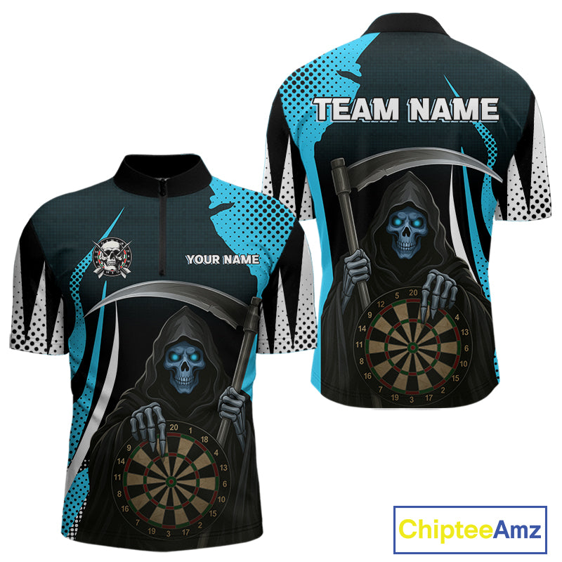 Personalized Blue Grim Reaper Dart Shirt For Men Custom Skull Dart Jerseys Team Polo & 1/4 Zip TDM4210