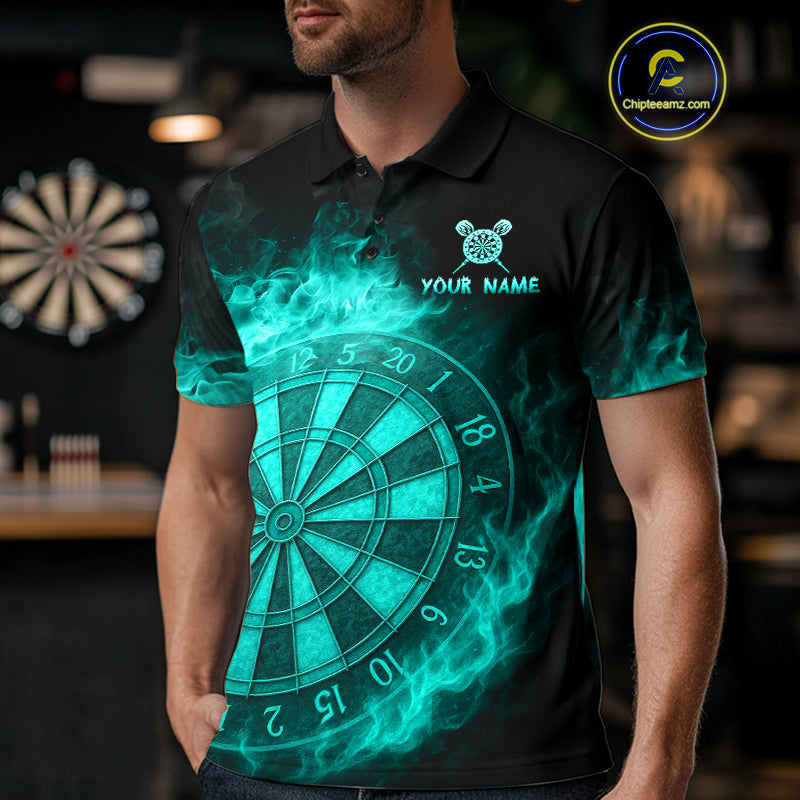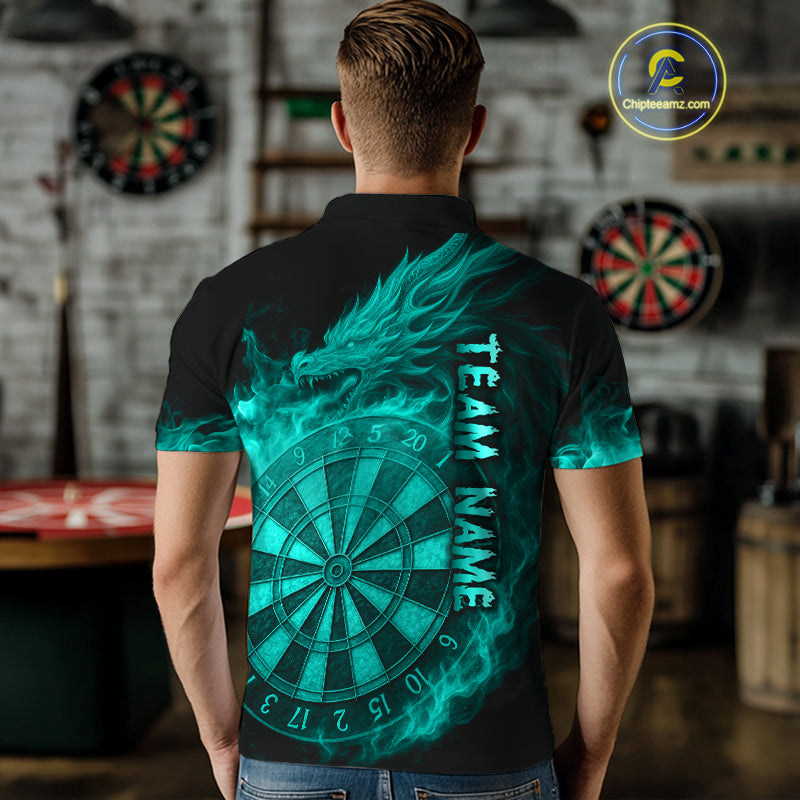 Personalized 3D Turquoise Dartboard Dragon Flame Dart Shirts For Men Custom Darts Team Jerseys TDM4313