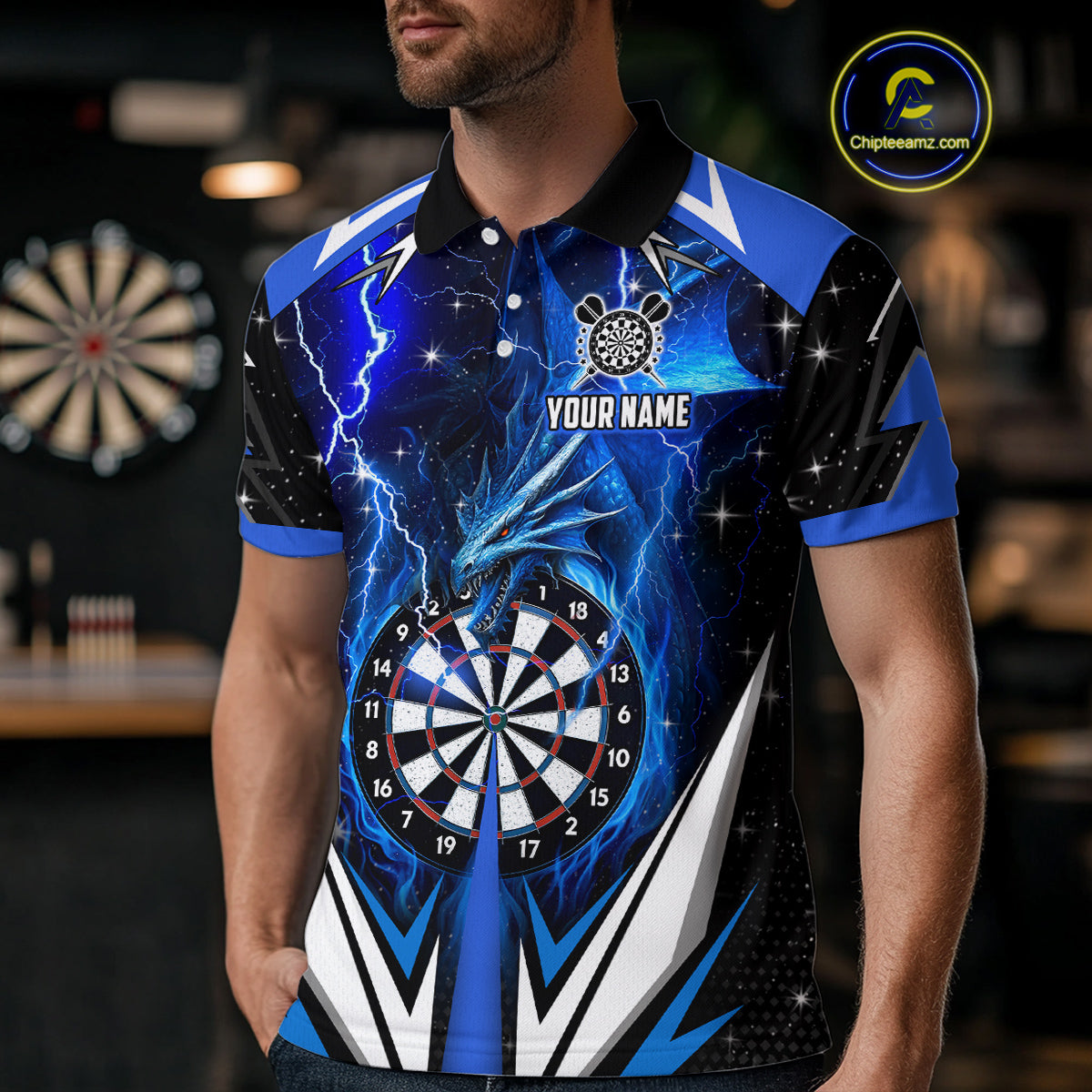 Blue Darts Jerseys Custom Thunder Lightning Dragon Dart Shirt Team Polo & Quarter Zip For Men TDM4314