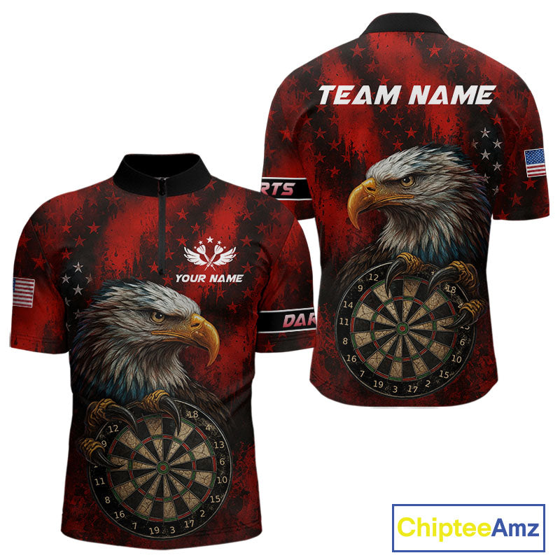 Black And Red American Flag Claw Eagle Darts Shirt For Men Custom Team Patriotic Darts Jerseys TDM4318