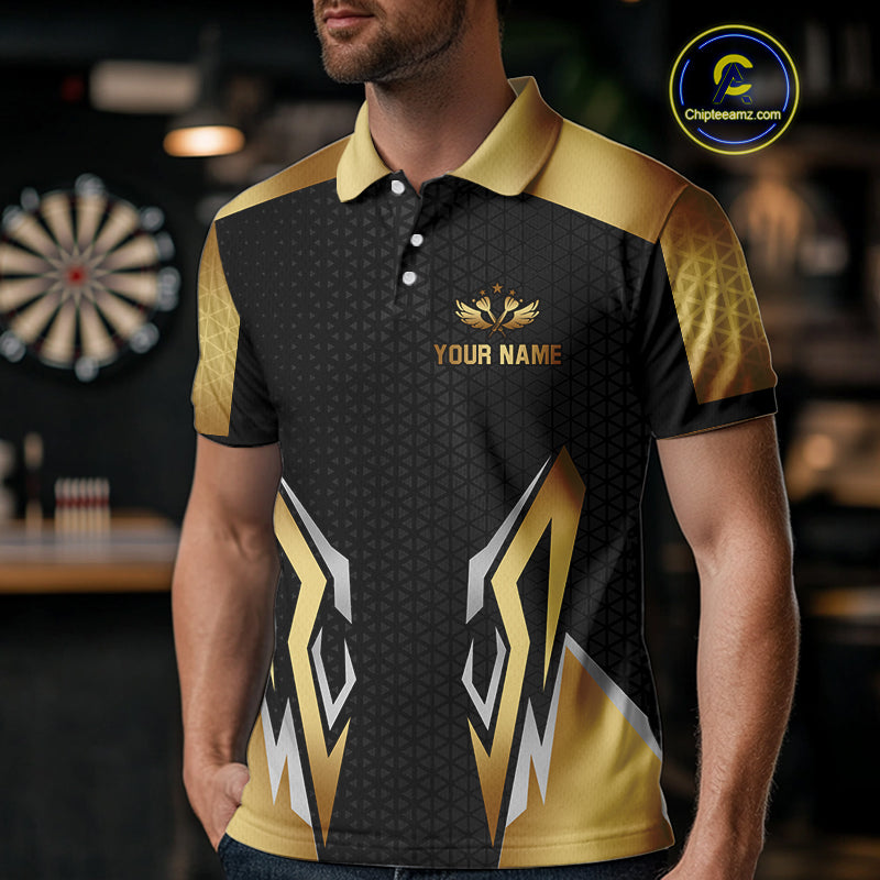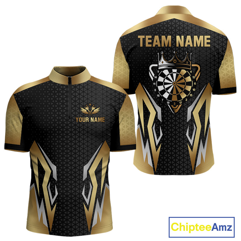 Black And Golden Funny Crown Darts Shirt For Men Custom Darts Jerseys Team Polo & Quarter Zip TDM4324