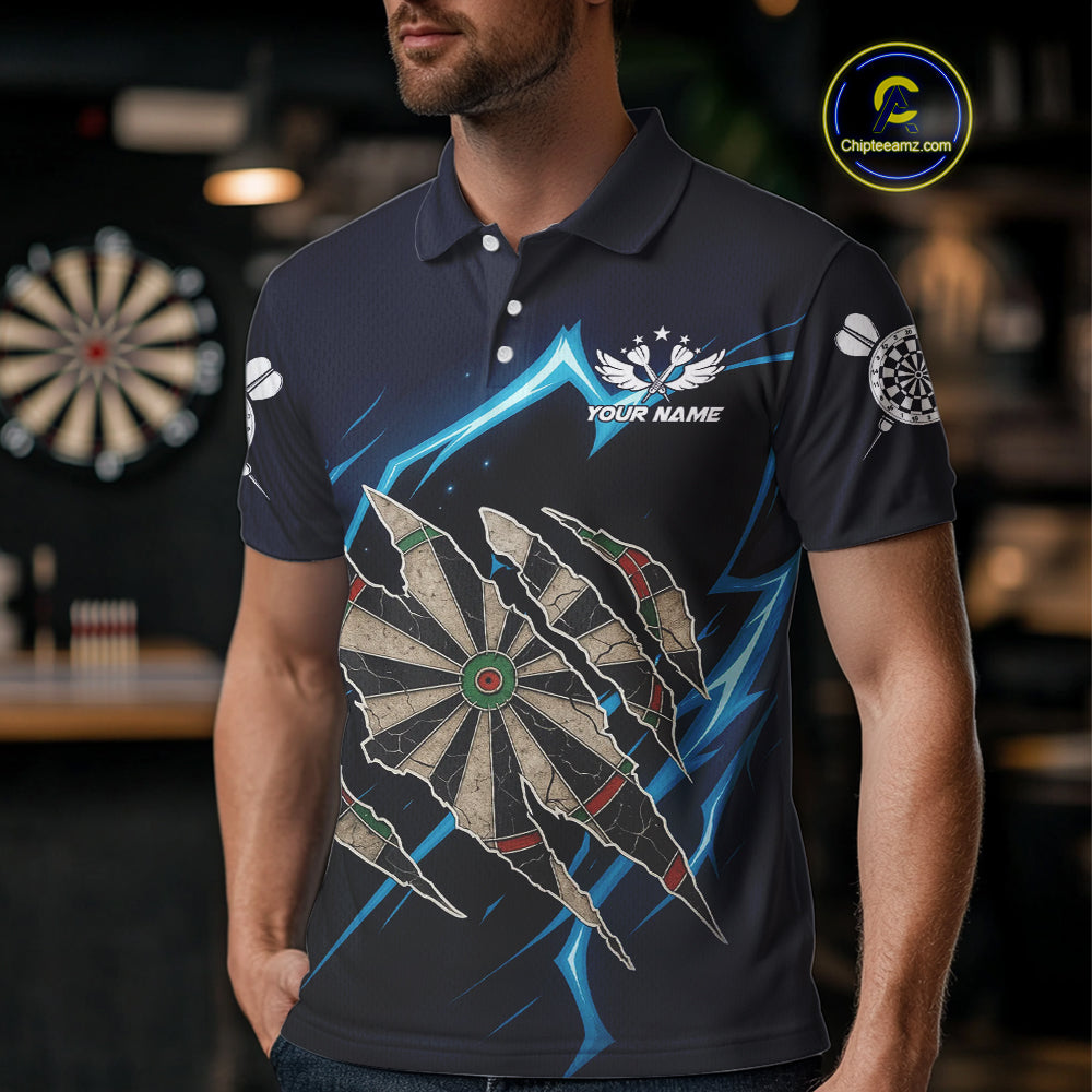Personalized Thunder Lightning Dark Navy Darts Shirt For Men Custom Funny Darts Team Jerseys TDM4336
