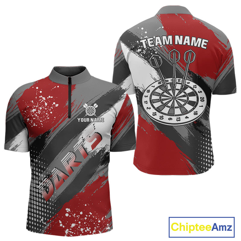 Personalized Red And Grey Grunge Darts Shirt For Men Custom Darts Jerseys Team Polo & Quarter Zip TDM4337