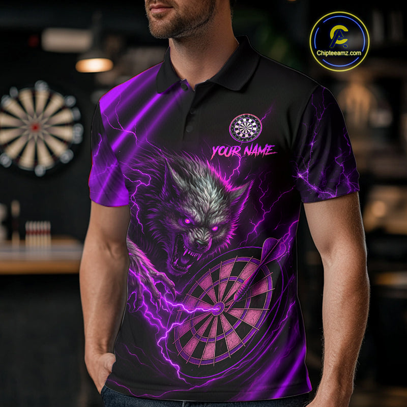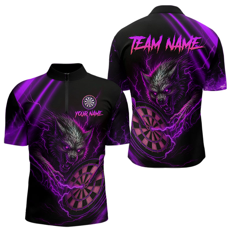 Personalized Purple Thunder Lightning Wolf Darts Shirt For Men, Darts Team Jersey Polo & 1/4 Zip TDM4384