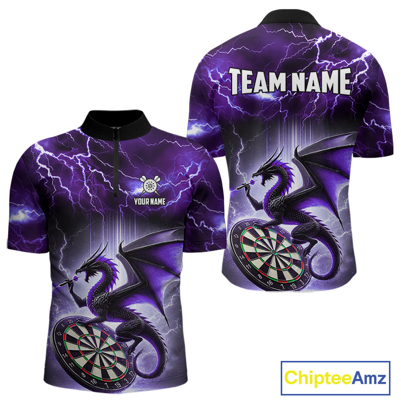 Custom Purple Thunder Lightning Dragon Darts Shirt For Men, Darts League Jersey Polo & 1/4 Zip TDM4385