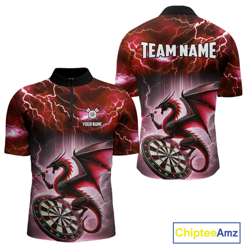 Custom Red Thunder Lightning Dragon Darts Shirt For Men, Darts League Jersey Polo & 1/4 Zip TDM4386