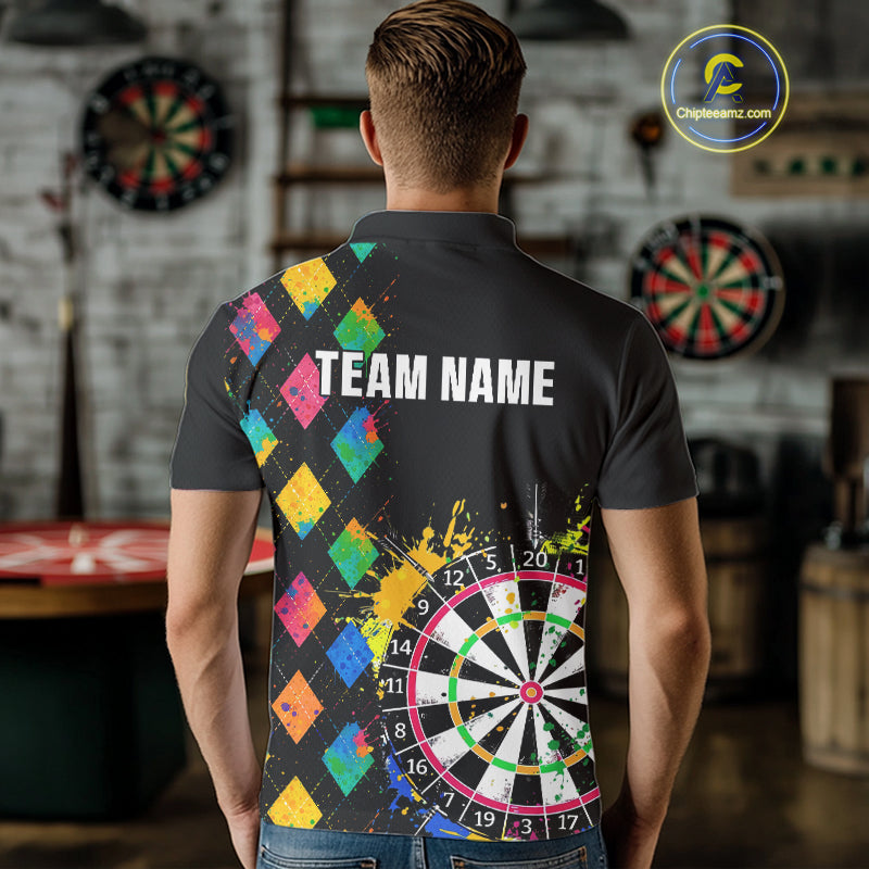 Custom Colorful Grunge Argyle Darts Shirt For Men Custom Darts Team Jersey, Funny Darts Gifts TDM4402