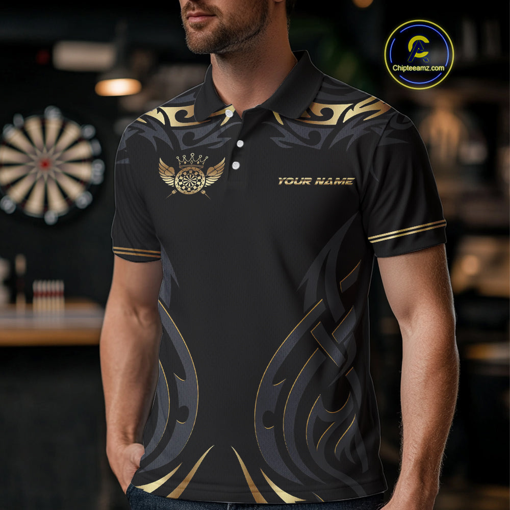 Black And Gold Dartboard Crown Wings Custom Darts Shirt For Men, Darts Team Jerseys Polo & 1/4 Zip TDM4420
