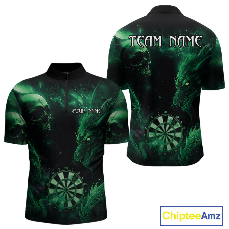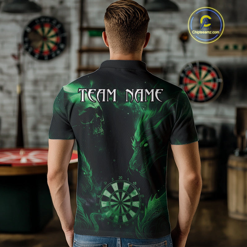 Black Green Custom Dragon Darts Shirt For Men, Darts Jersey Pocket Option TDM4448