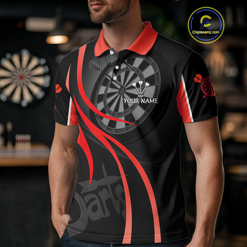 Black And Red Darts Jersey For Men Custom Team Polo & Quarter Zip Darts Shirt Uniform TDM4488