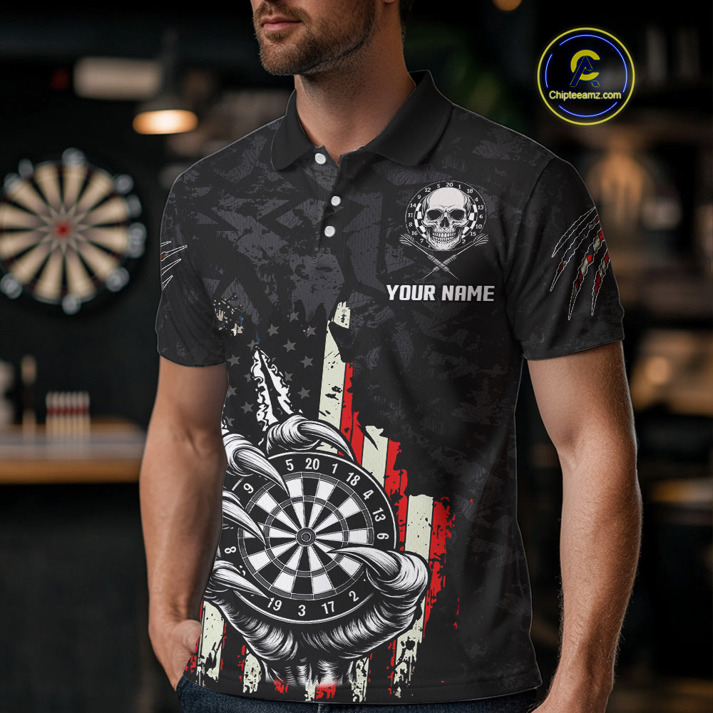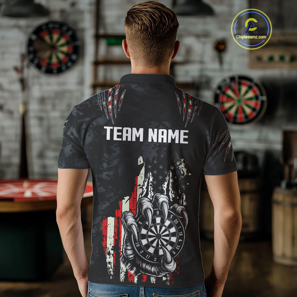 Funny Claw Tearing US Flag Darts Shirt For Men Custom Patriotic Skull Darts Team Jerseys TDM4503