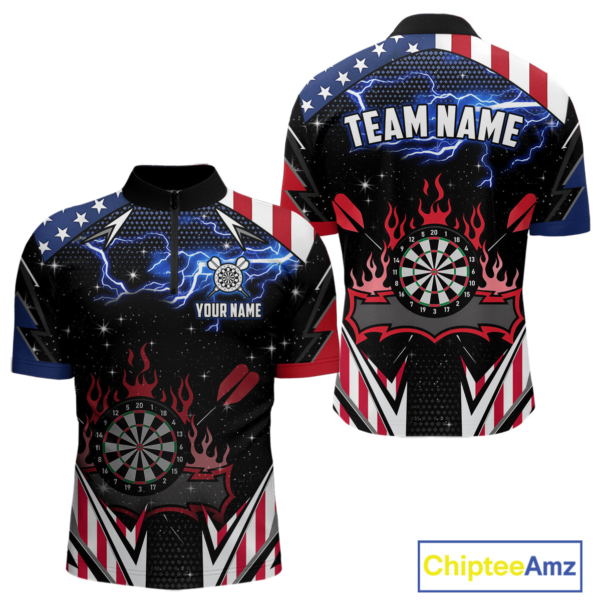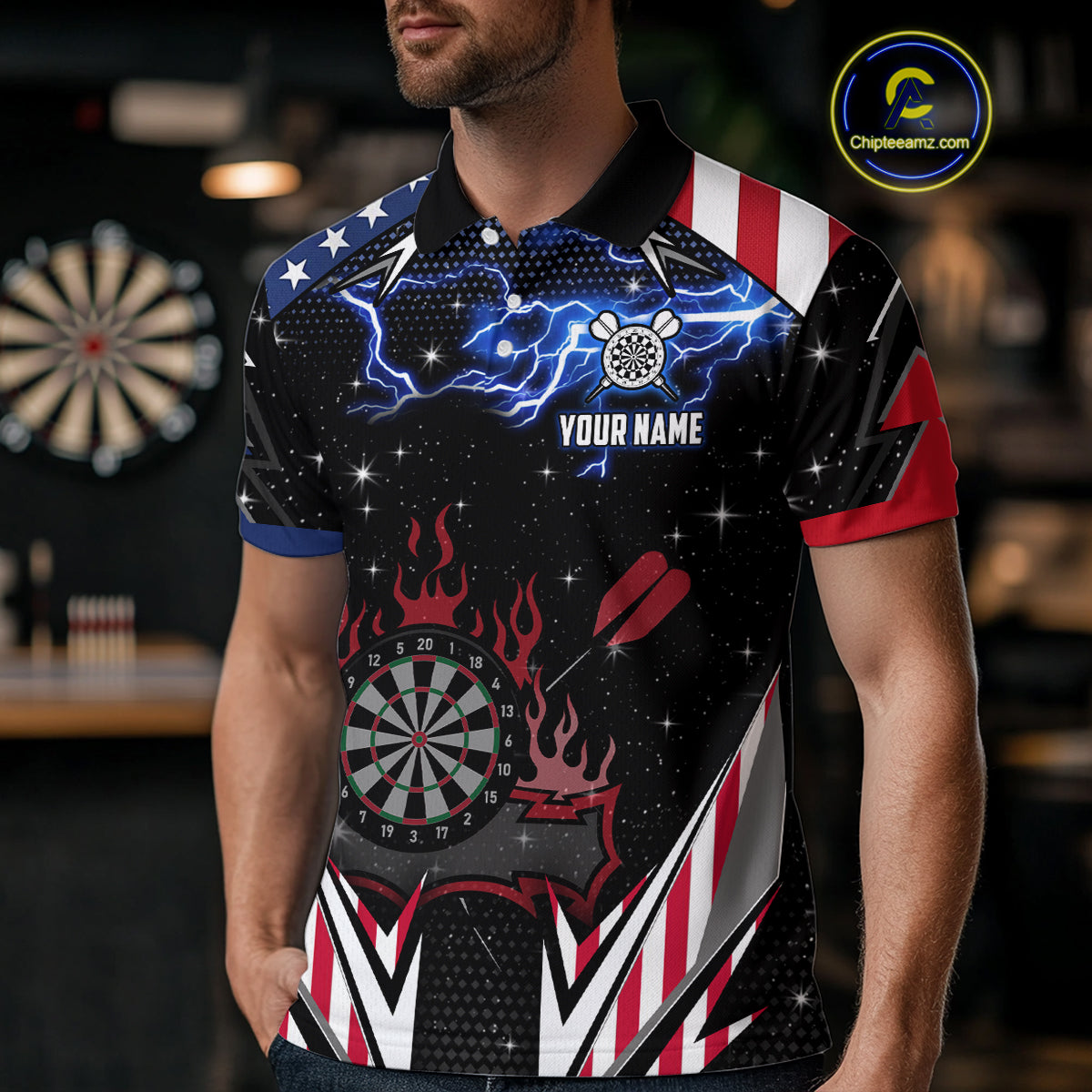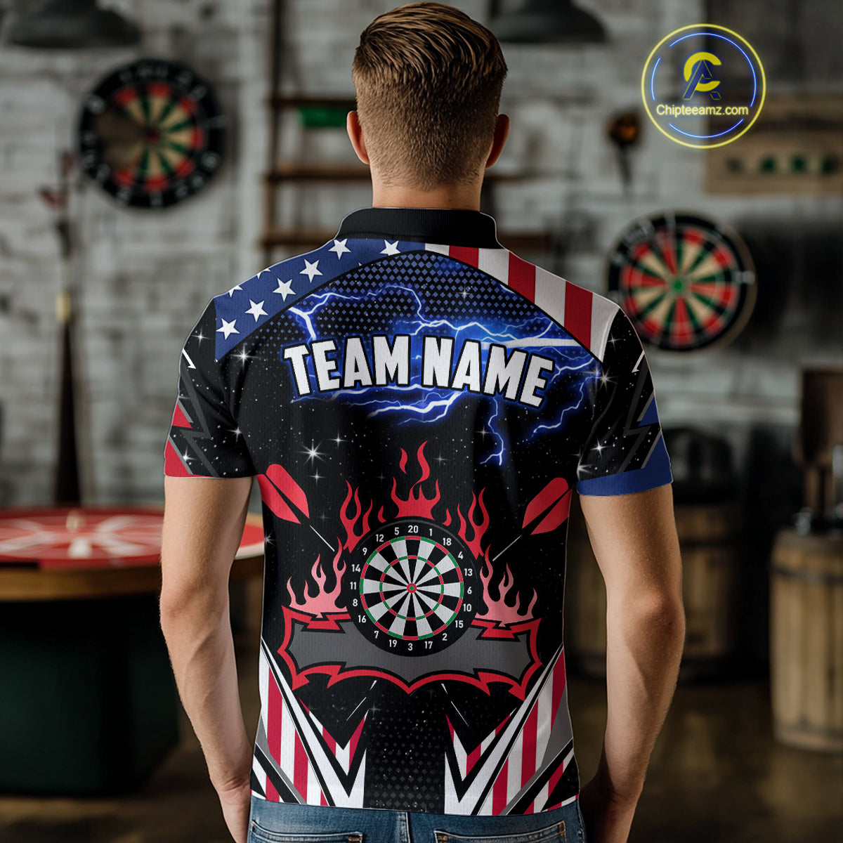 Personalized Thunder Lightning American Flag Darts Shirt For Men, Patriotic Darts League Jersey TDM4504