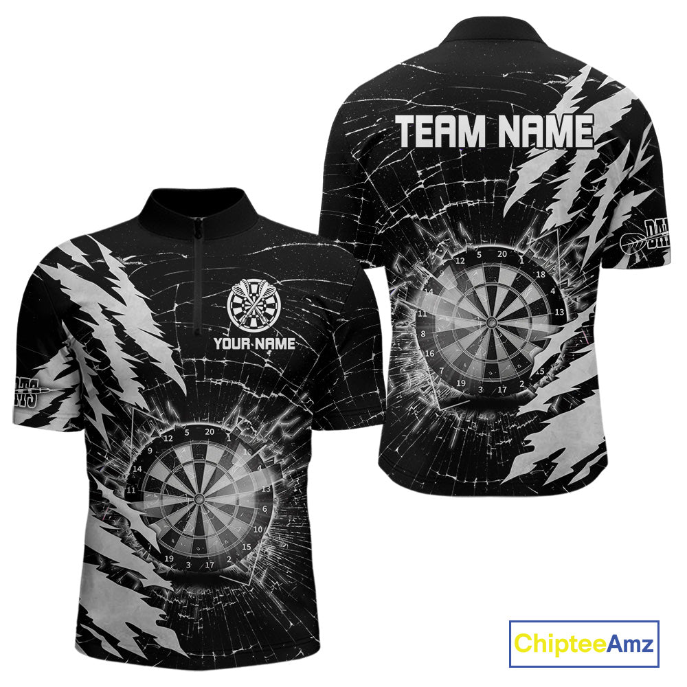 White Black Darts Board Break Glass Custom Dart Shirts For Men, Darts Team Shirts Dart Jersey TDM4522