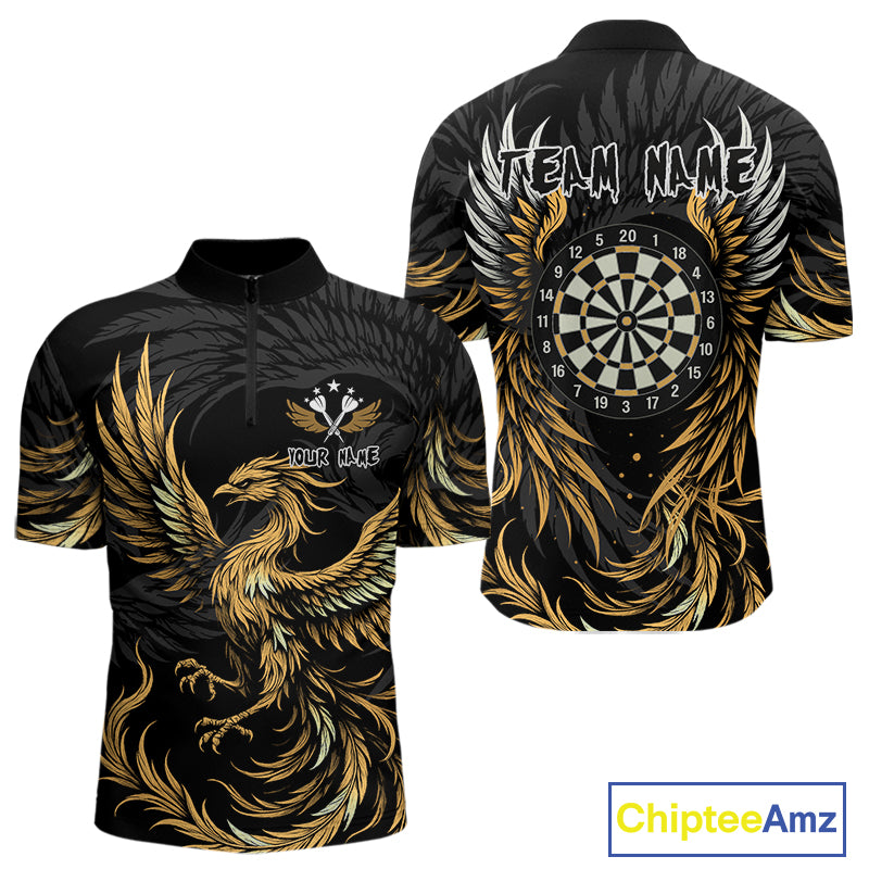 Personalized Phoenix Dartboard Wings Men's Dart Shirts Custom Yellow And Black Darts Team Jerseys TDM4585