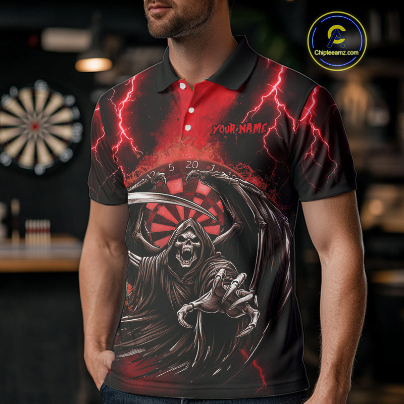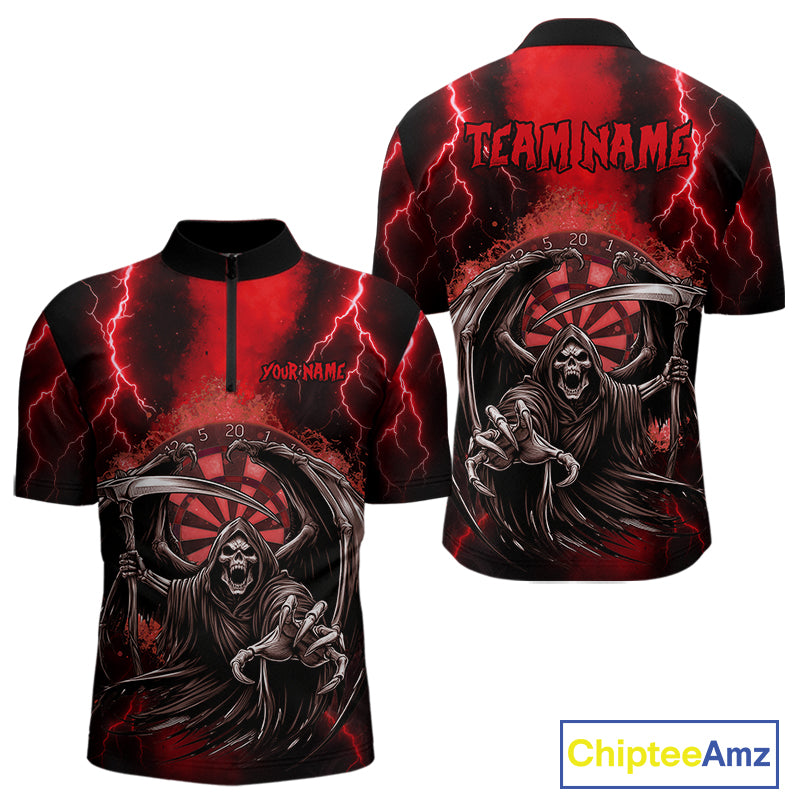 Personalized Red Grim Reaper Thunder Lightning Darts Shirt For Men, 3D Darts Team Jerseys TDM4588