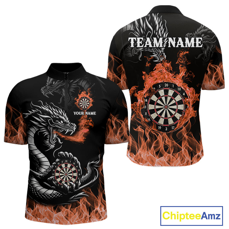 Personalized Orange Flaming Dragon Darts Shirt For Men Custom Darts Team Jersey Polo & Quarter Zip TDM4593