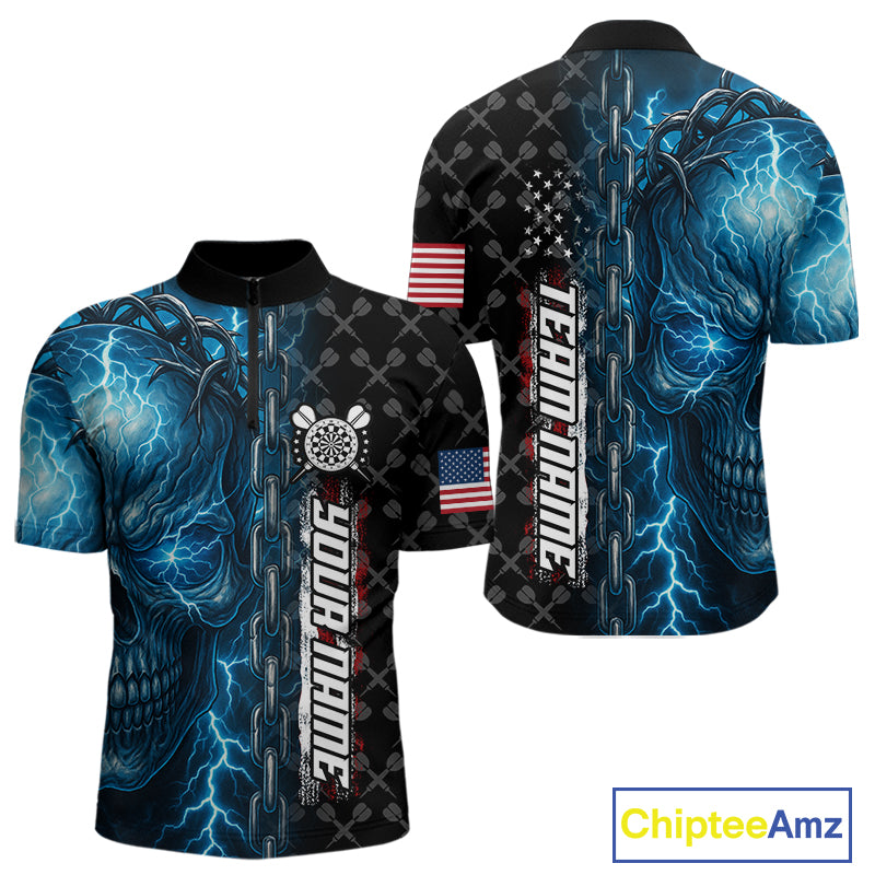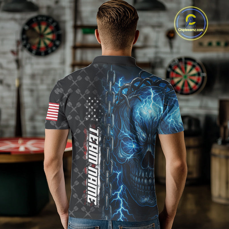 Personalized Blue Darts Skull Thunder Lightning Darts Shirt For Men, US Flag Darts Team Jersey TDM4613